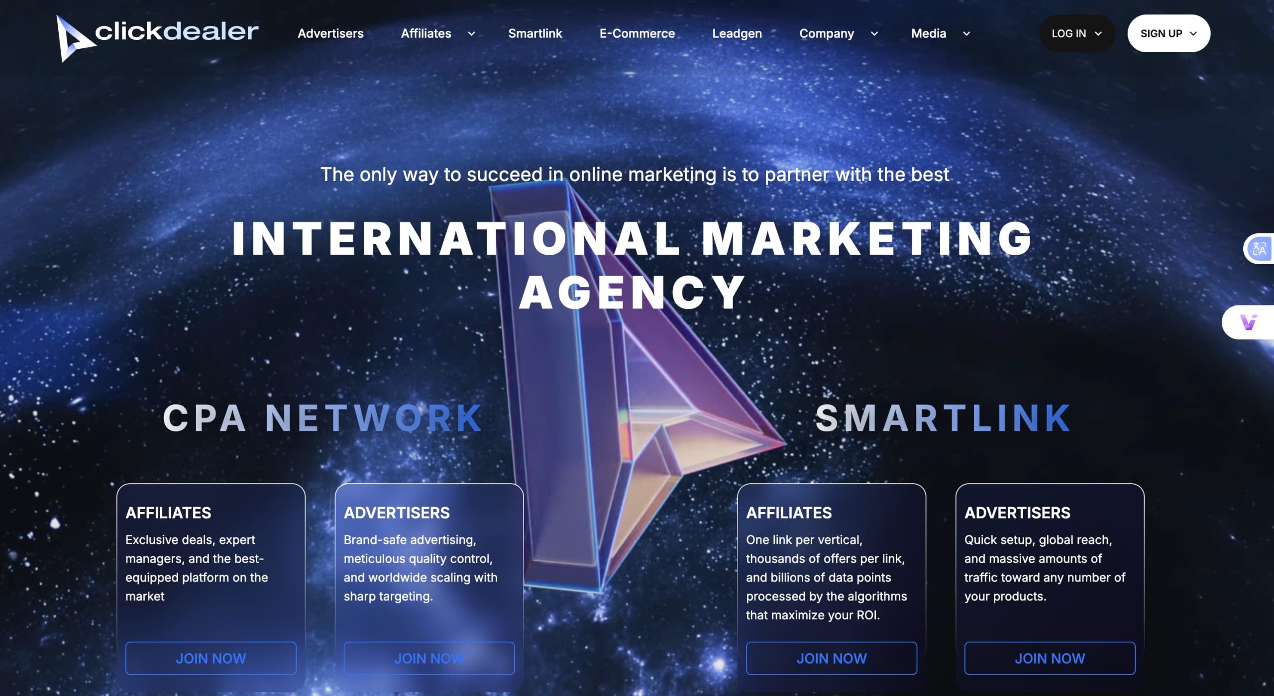 ClickDealer是一家全球领先的绩效营销平台,专注于为广告主、发布商和代理机构提供定制化广告解决方案。自2012年成立以来,公司在40多个垂直领域积累了丰富经验,尤其在Pay-per-call、潜客获取、电商等方向表现出色。ClickDealer通过专业呼叫中心合作、关键词优化和智能流量分发系统,帮助合作伙伴高效变现流量